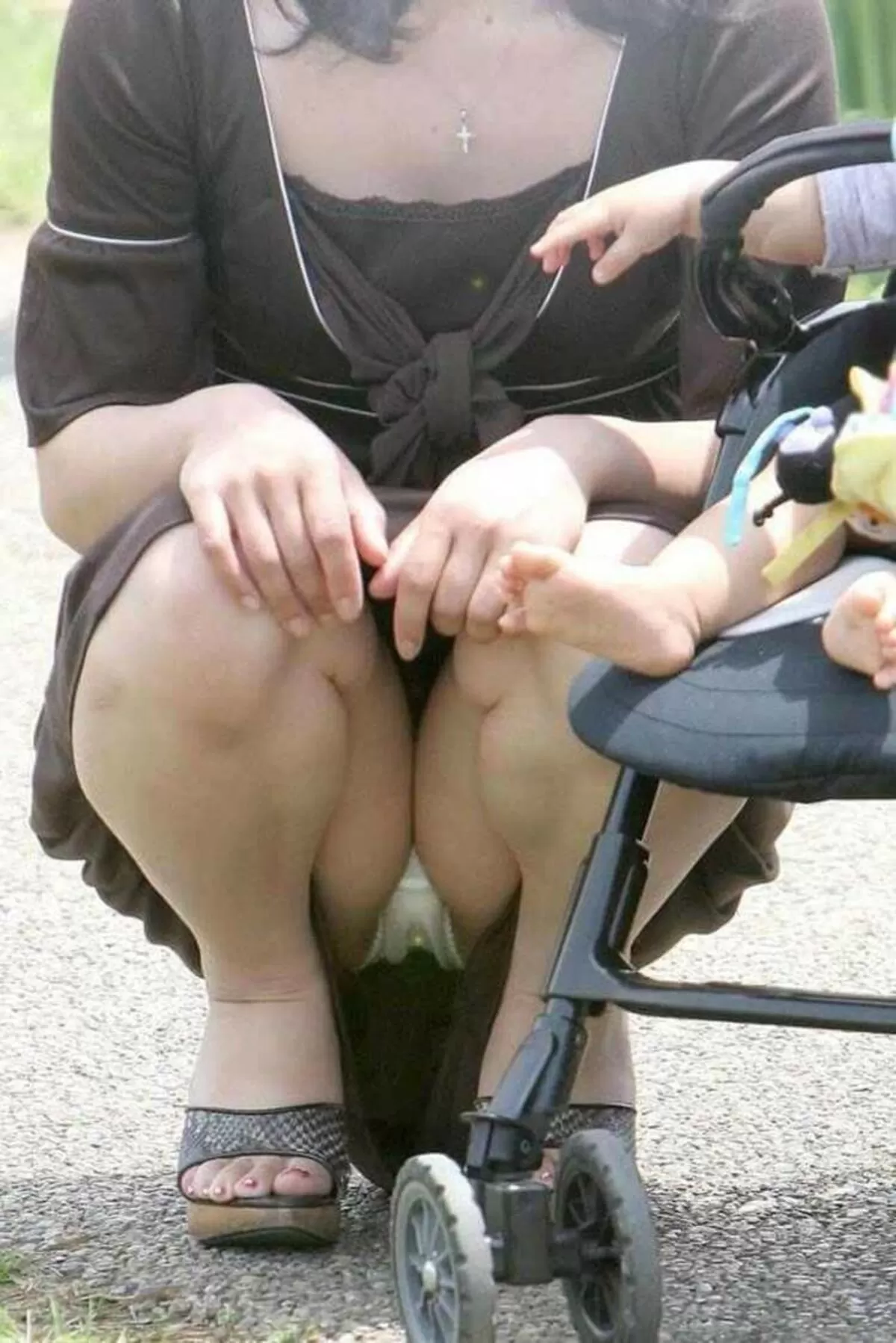 【画像128枚】子連れママの瞬間ハプニング!パンチラ・胸チラだらけじゃないかwww