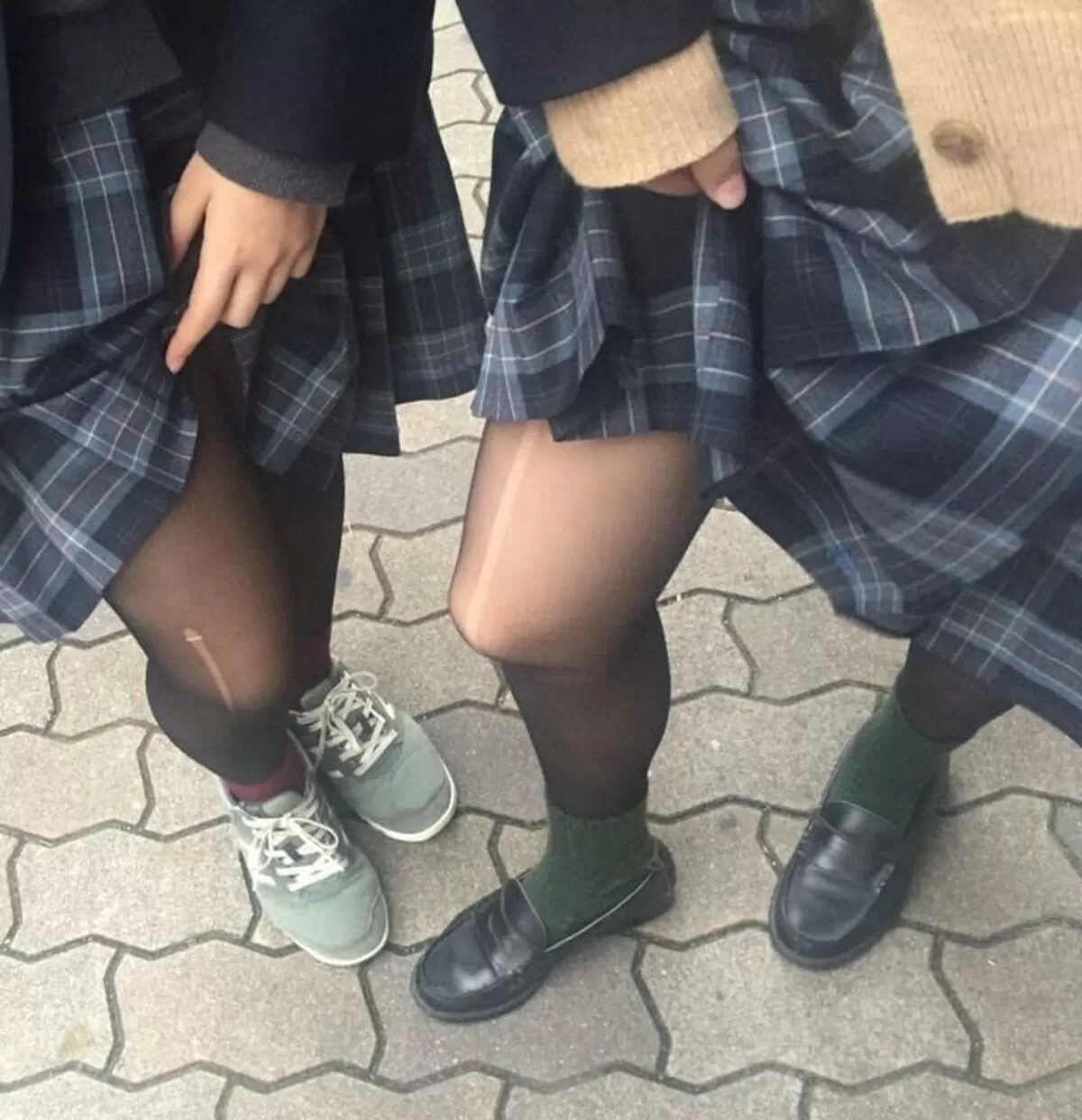 白と黒のコントラストが美しい生足JKと黒ストJKエロ画像9枚