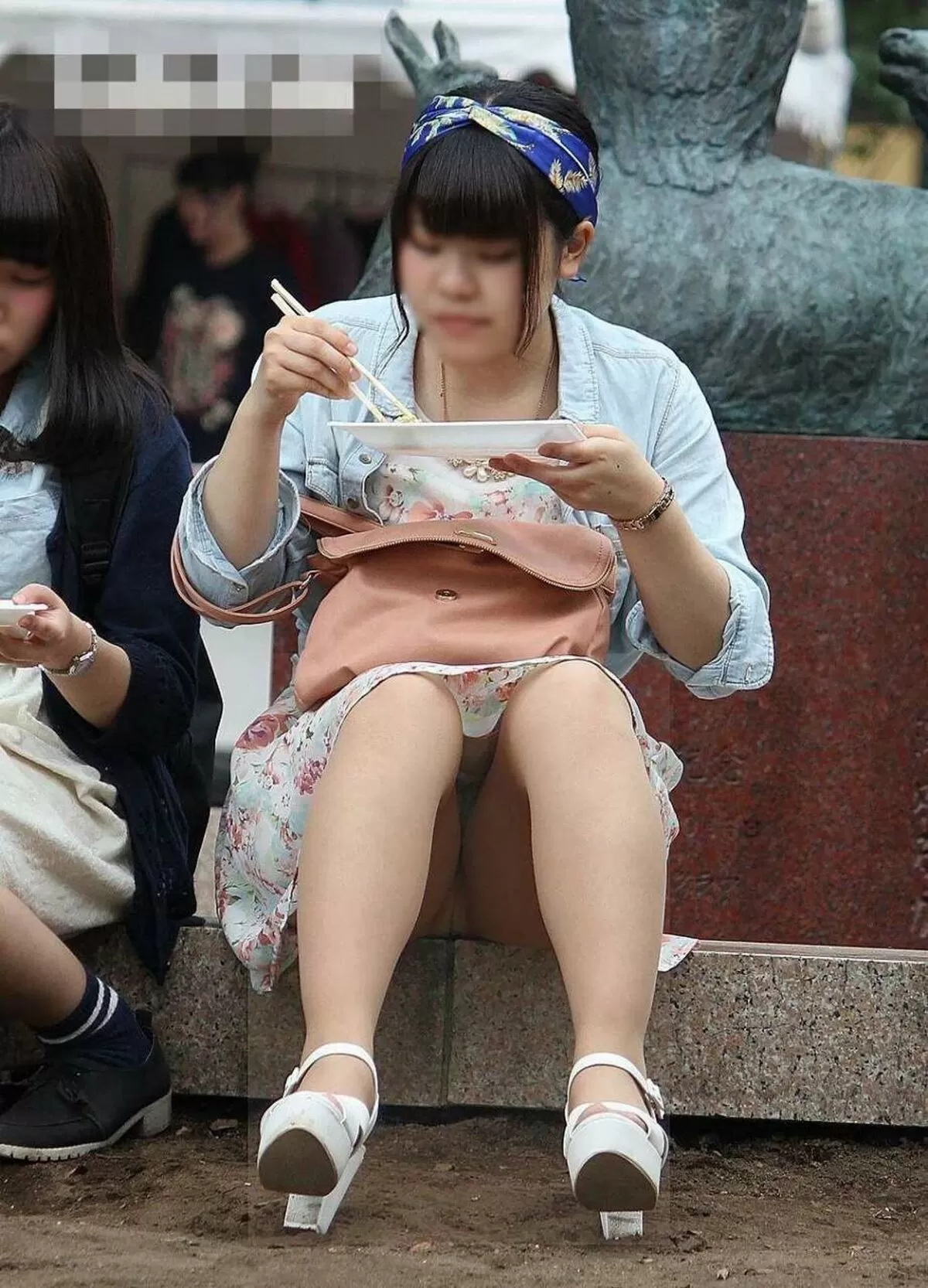 ダベってるJK盗撮エロ画像52枚!コンビニ前や街中・階段に座ってる女子校生のパンチラ集めてみた