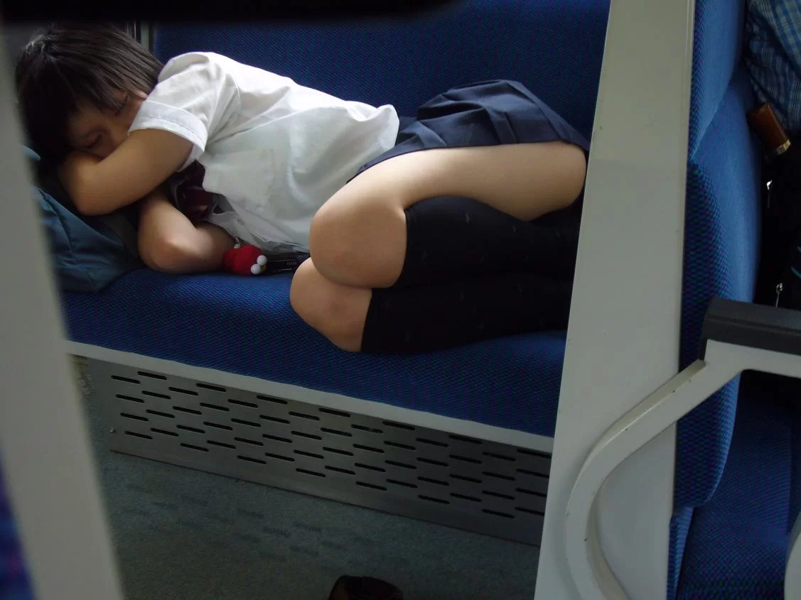 居眠りJK盗撮画像35枚!電車でうたた寝してる無防備な女子高生隠し撮り