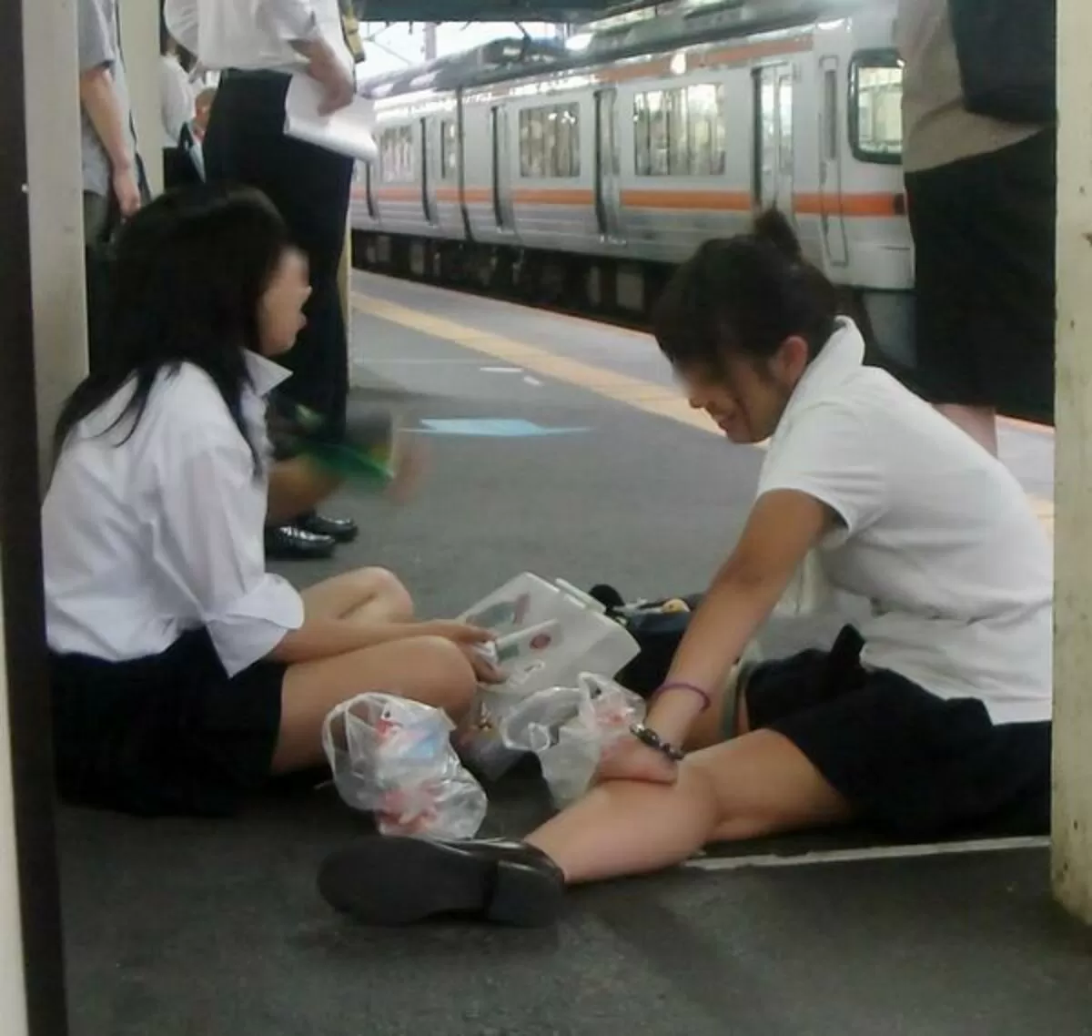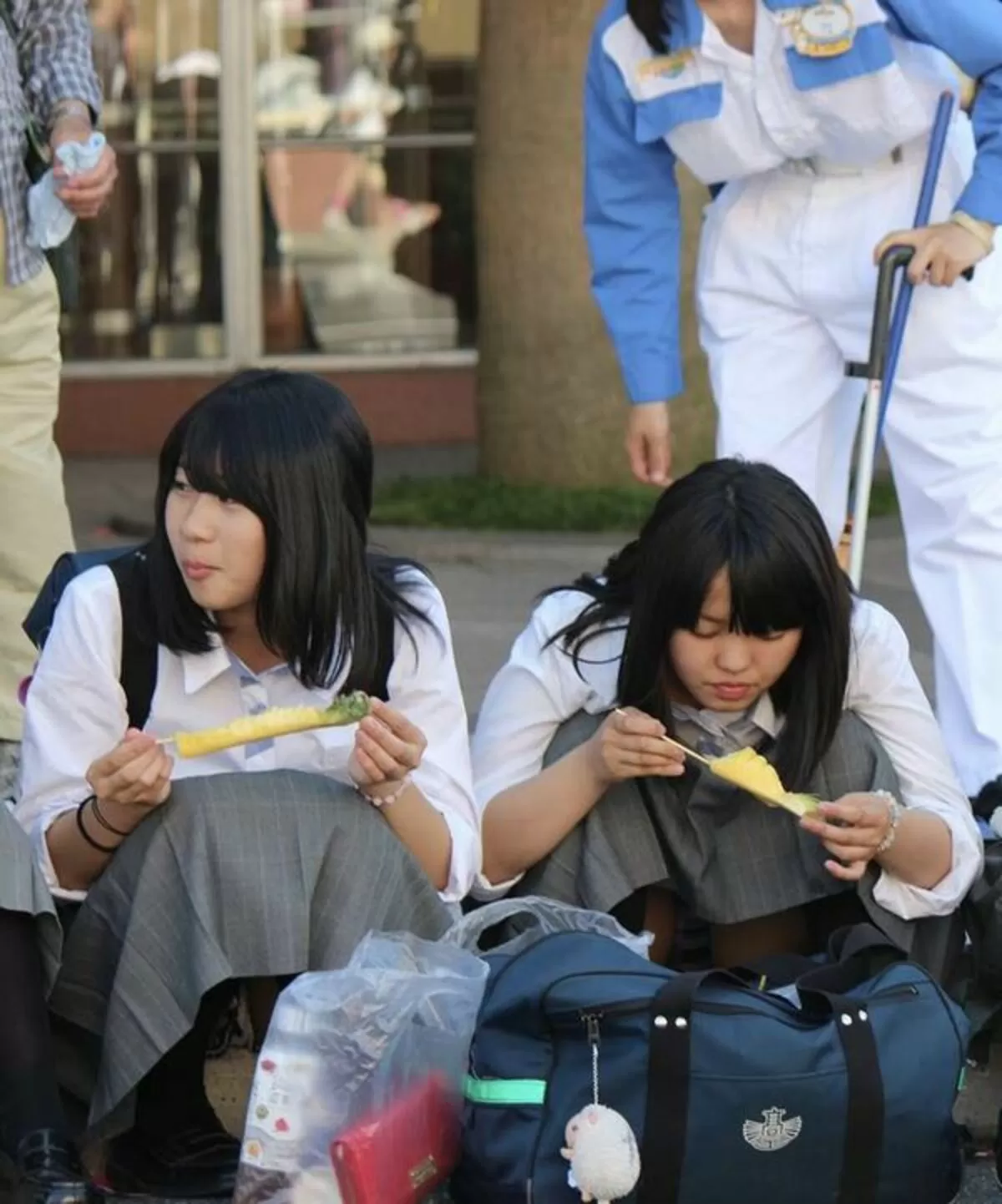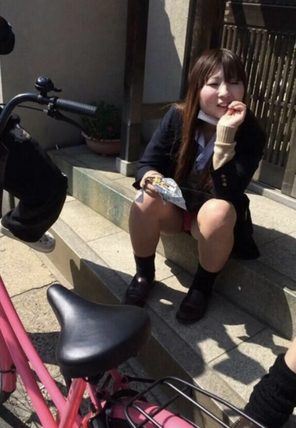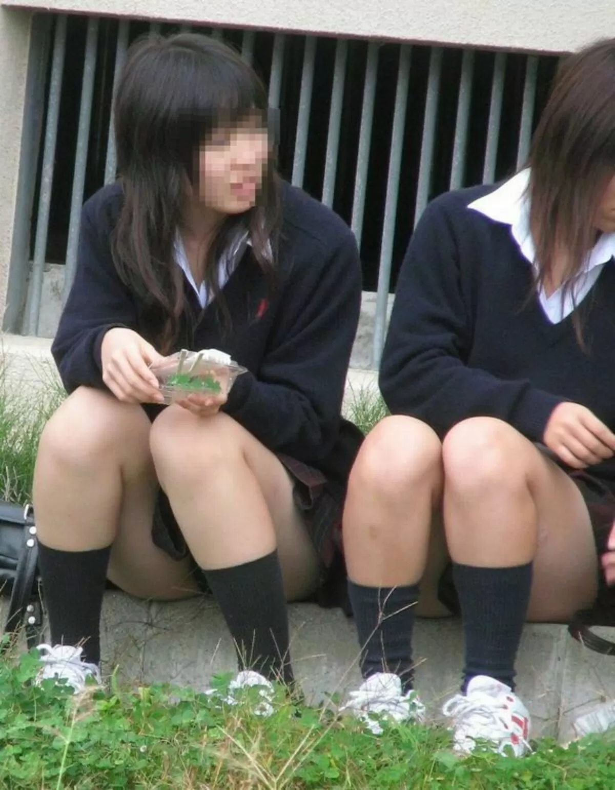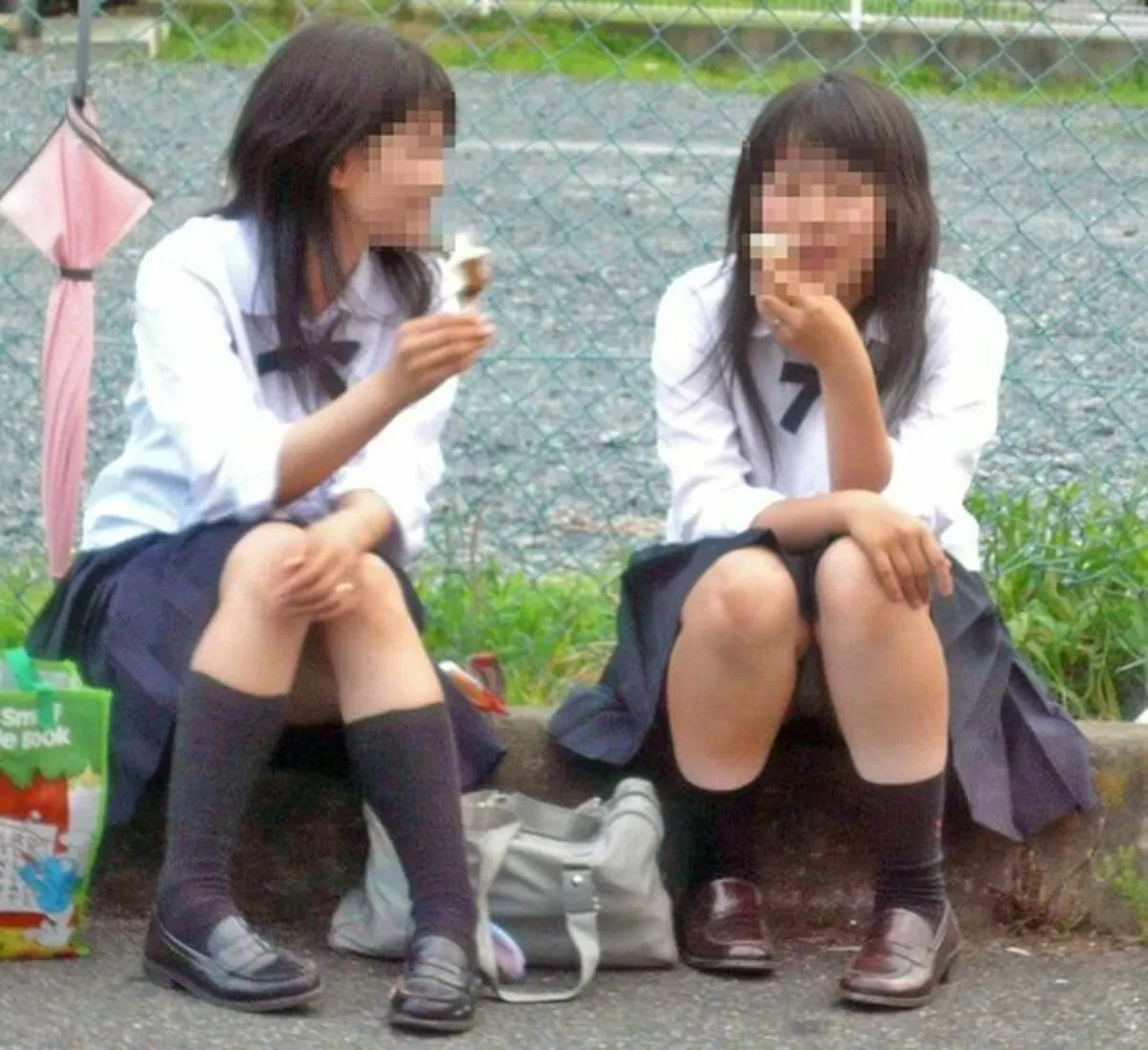 学校帰りにコンビニや出店などに寄り道して食い物を買い、そこら辺で座って食べてる制服女子。色気より食い気なのか、食ってる最中は股の閉まりが緩まってパンチラ率が高まる。