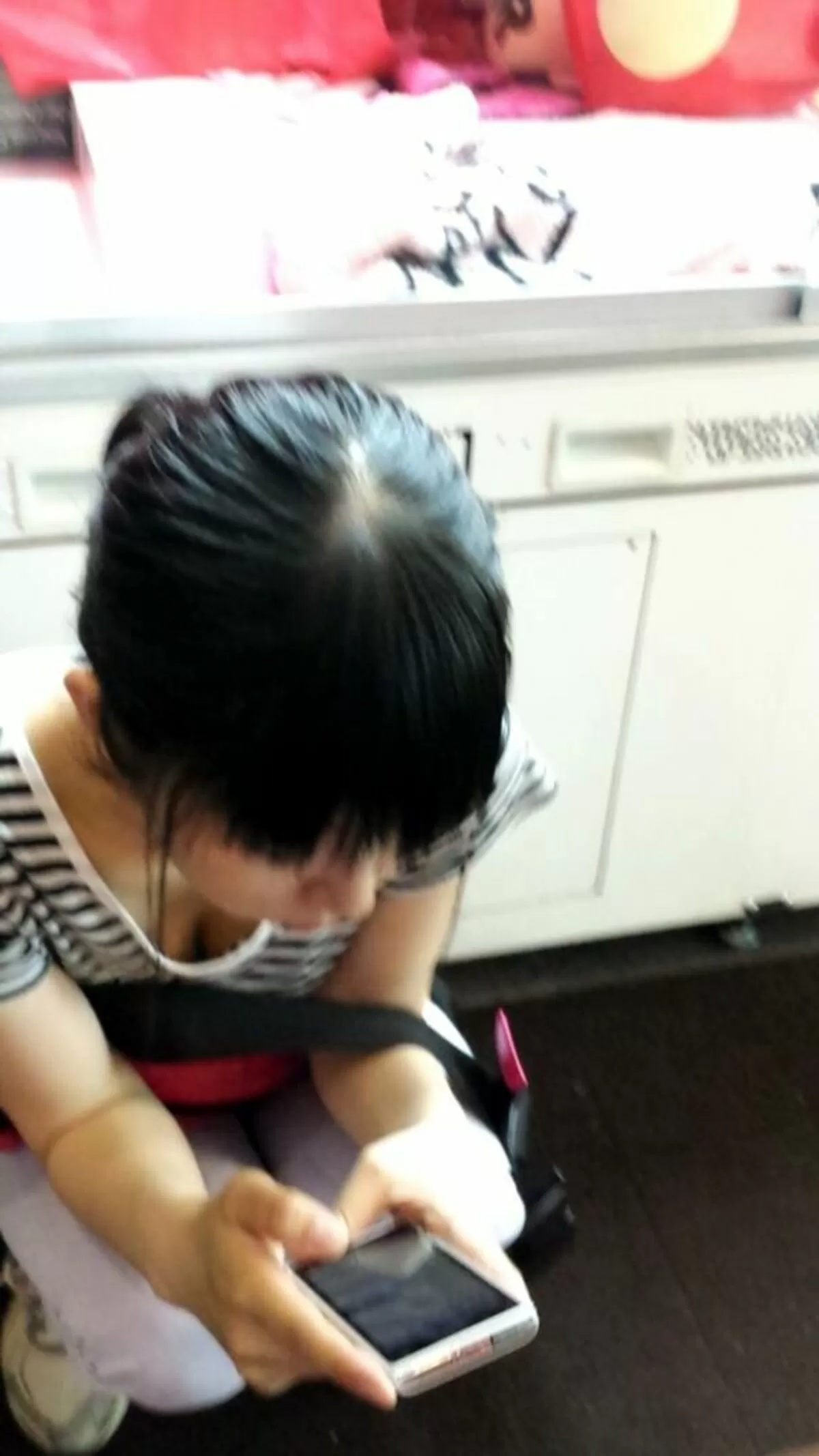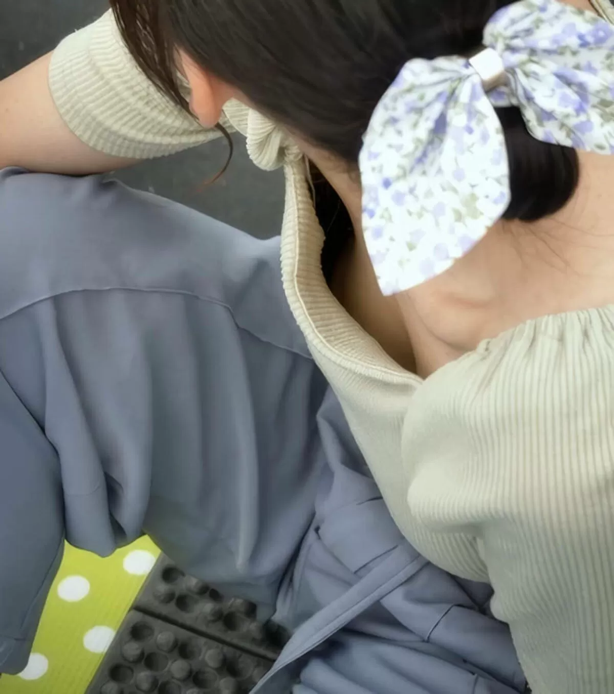 しゃがみ胸チラ画像165枚!高低差で上から見下ろした素人の谷間盗撮集めてみた